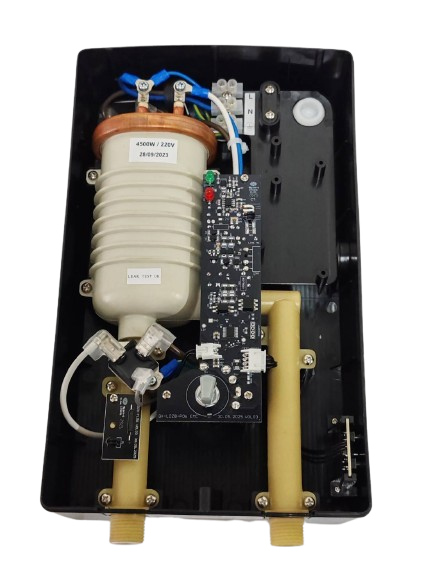 • ระบบจ่ายไฟควบคุมการทำงานด้วยแรงดันน้ำ (Pressure  Switch)  จะตัดกระแสไฟทันทีที่แรงดันน้ำเข้าเครื่องไม่เพียงพอ